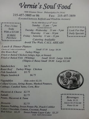 Vernie’s Soul Food provides professional Soul Food Restaurant services to clients in Logan, Philadelphia, focusing on quality results and customer satisfaction.